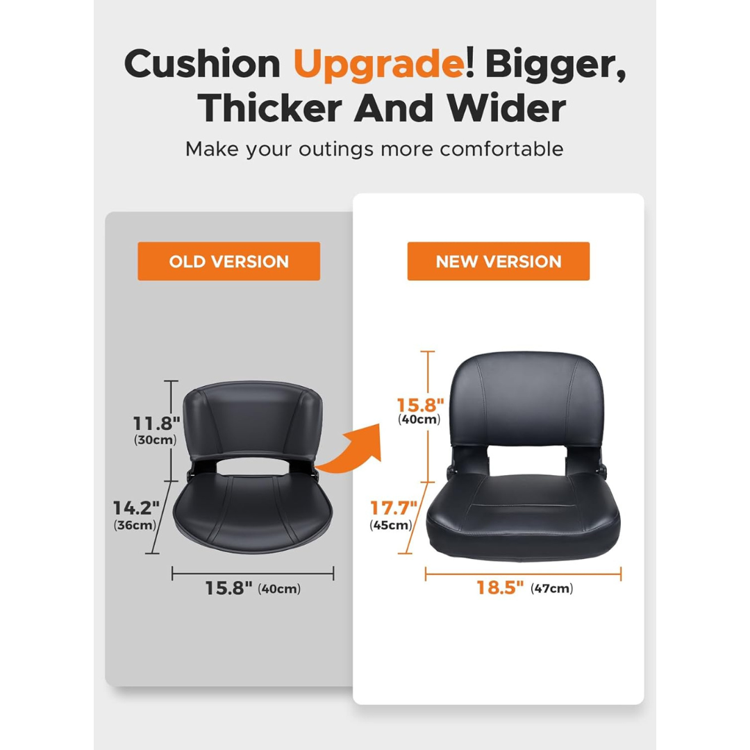 Enjoy a more comfortable journey with the upgraded seat cushion, measuring 18.5" L x 17.7" W x 15.8" H. Upholstered in soft faux leather, the seat swivels 360° for easy boarding and disembarking, while the widenable handle and operating lever accommodate various body sizes, ensuring a pleasant ride for extended periods.