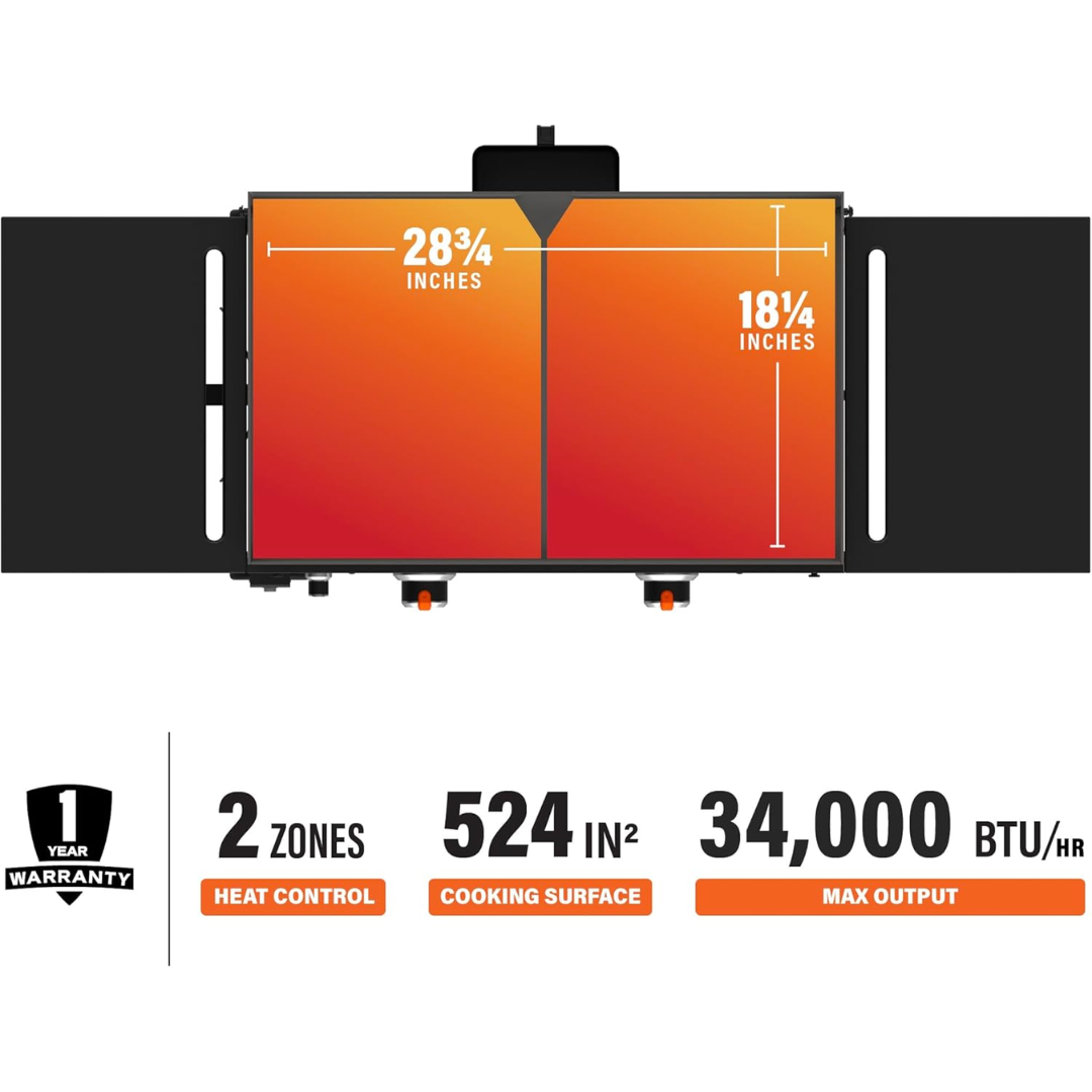 - Large Cooking Surface – 524 sq. in. heavy-duty griddle top provides ample space for cooking multiple dishes at once.