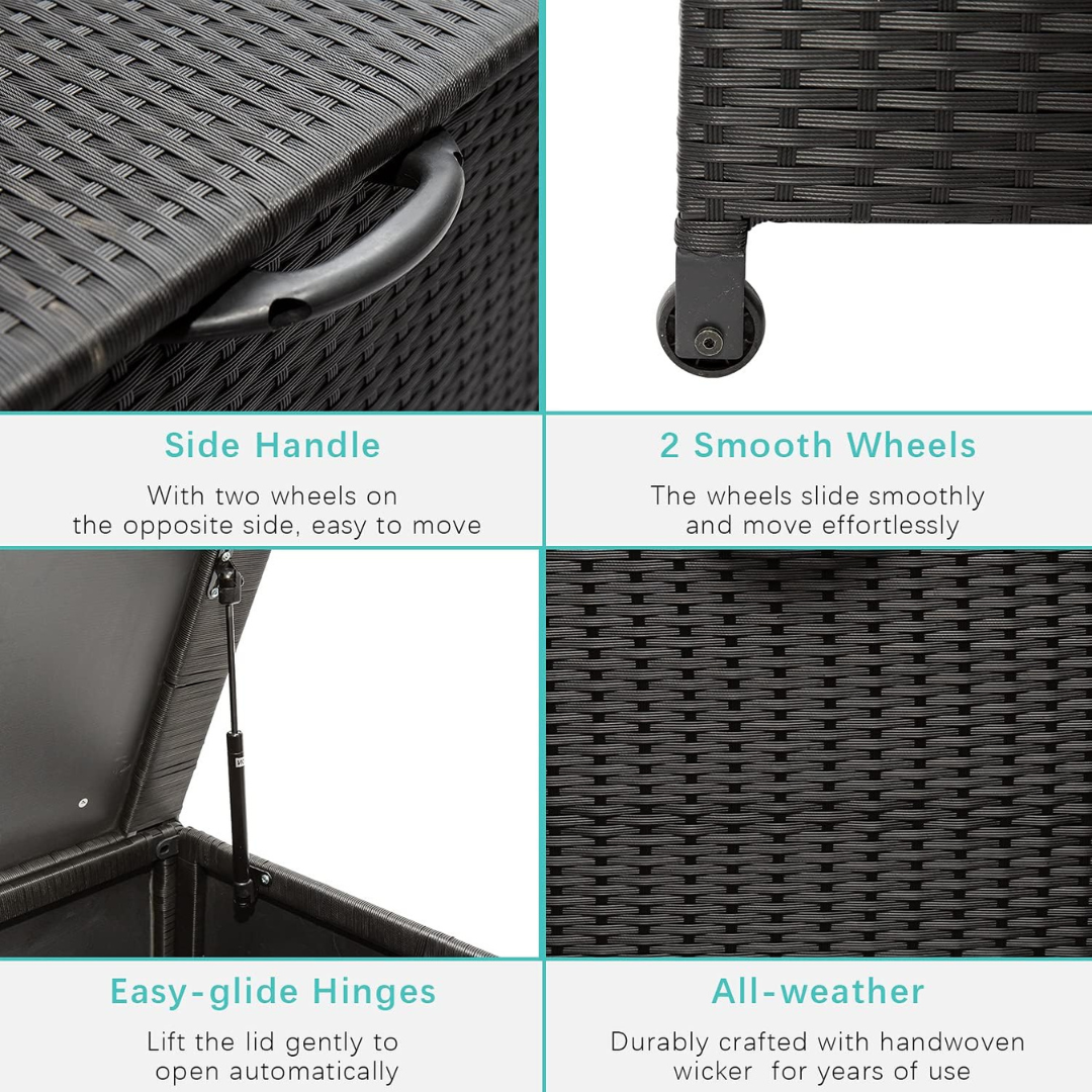 Durable Resin Rattan Design – Crafted with a wicker-style texture, this box is weather-resistant & UV-protected for long-lasting use.