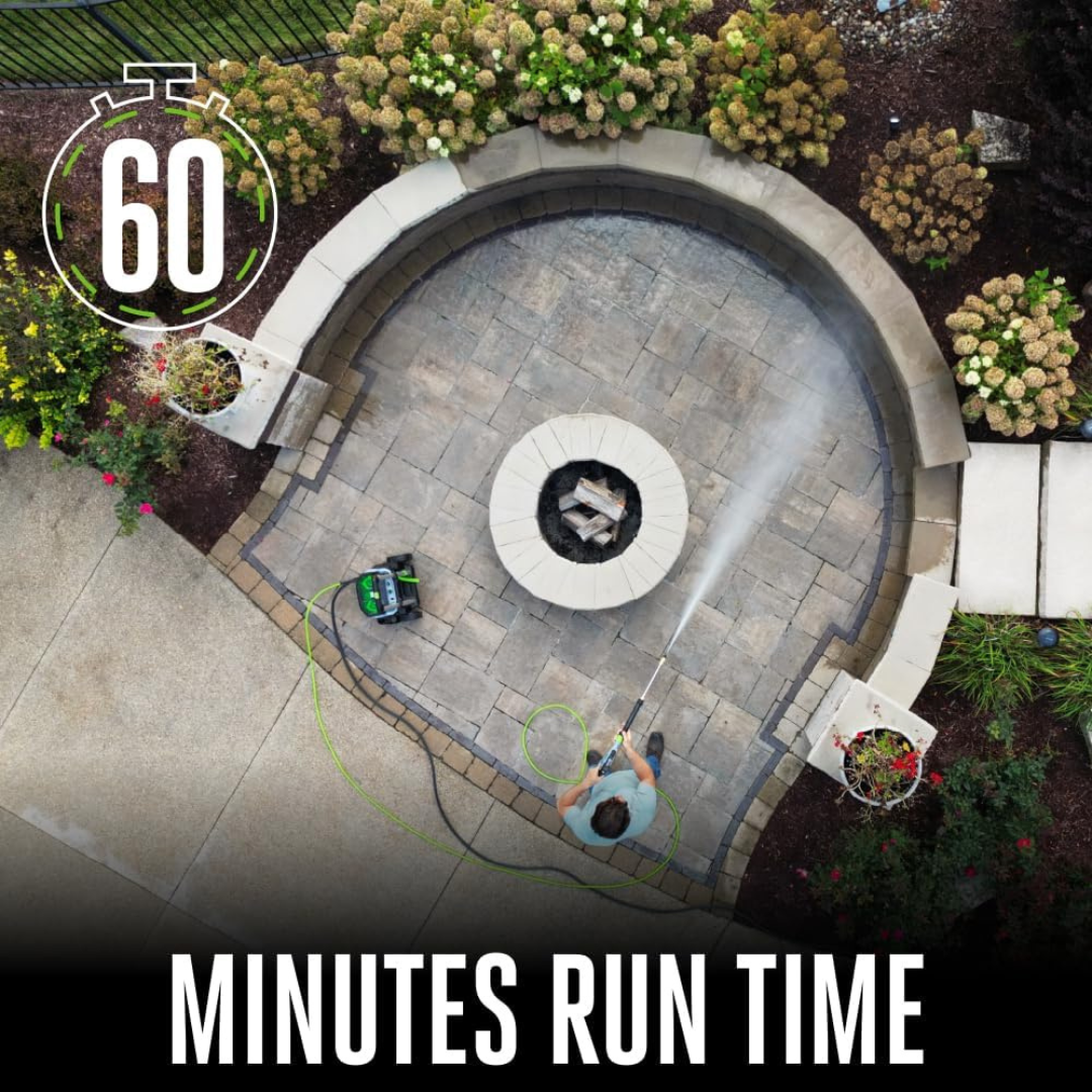 Peak Power Technology: Combines two 56V ARC Lithium batteries for up to 3200 PSI at 1.2 GPM (up to 2.0 GPM).