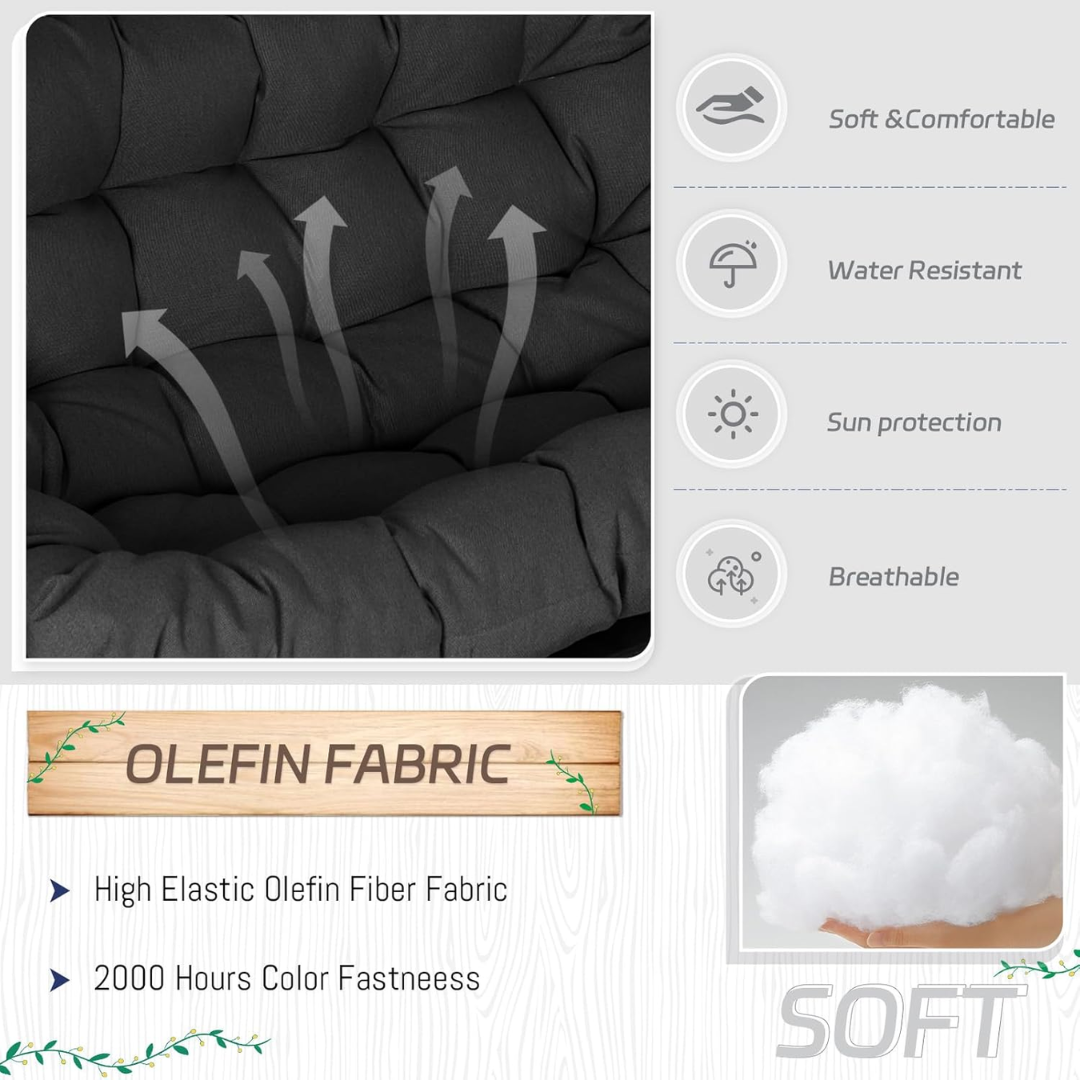 This extra-large double egg chair is designed for ultimate relaxation, whether indoors or outdoors. With a sturdy steel frame, weather-resistant PE rattan, and a fully stuffed cushion, it offers comfort, durability, and style. Plus, it comes with a protective cover for added longevity.