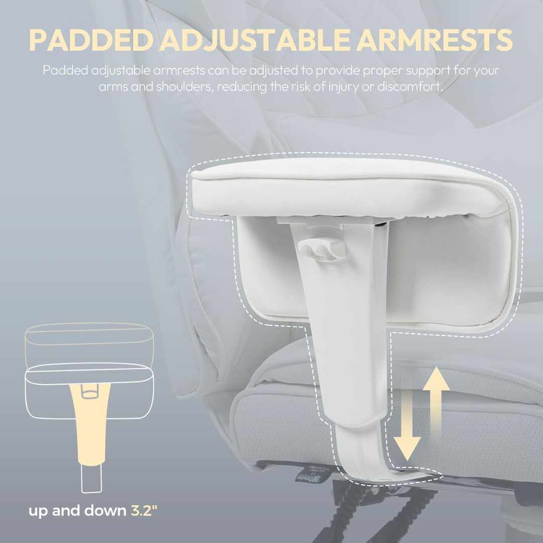 Enjoy a 90° to 135° reclining range, perfect for both work and relaxation. Adjustable padded armrests allow for customized positioning, with many users highlighting the convenience of lift-up and adjustable armrests for added flexibility.