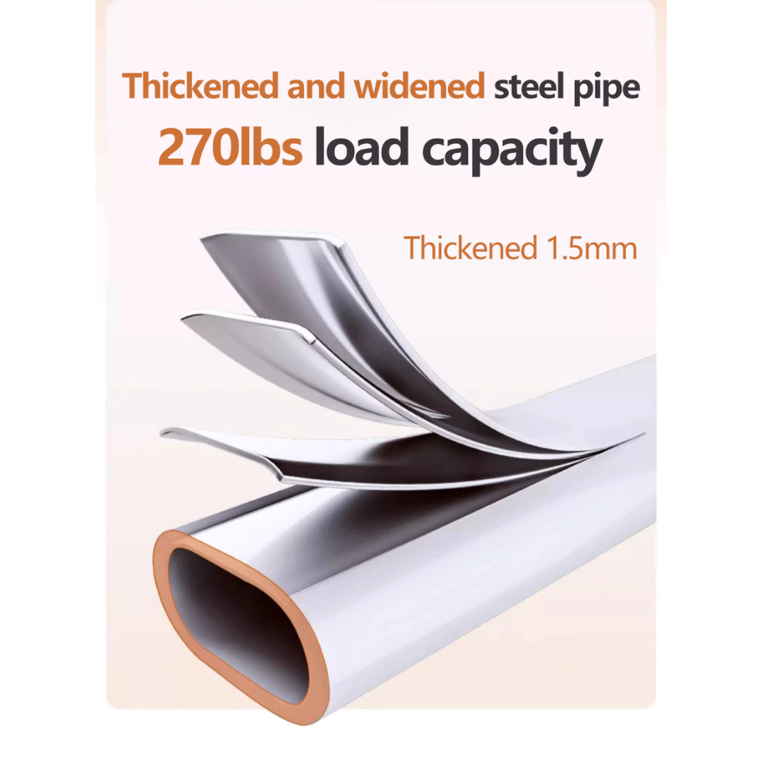 Designed for home fitness, the foldable structure takes up minimal space, requiring only the footprint of a picture frame. It folds and unfolds in just one minute, making it ideal for small spaces.