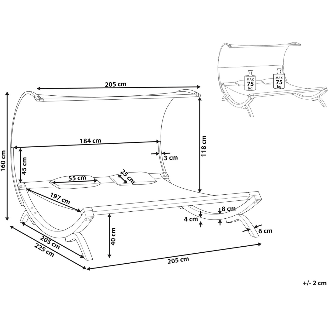 Elevate your outdoor lounging experience with this uniquely designed double sunbed hammock. Crafted from durable, lightweight larch wood, the frame offers both strength and flexibility, making it ideal for long-term outdoor use. The wide, circular structure provides ample space for two, while the sturdy leg supports ensure stability across any flat surface.