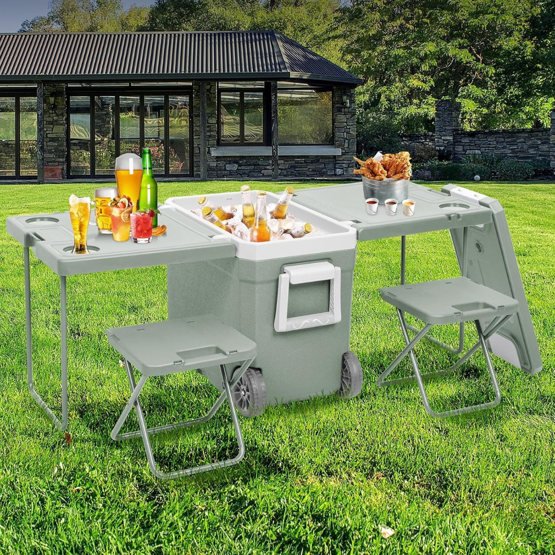 Ice Box with Table & Chairs – Portable Trolley Cooler