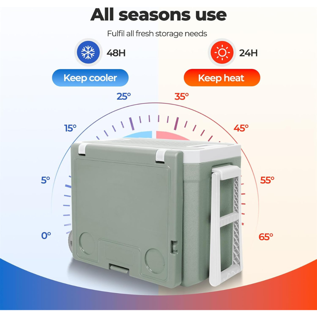 Crafted from durable PE and PP materials with thick internal insulation, the cooler ensures leak resistance and thermal efficiency, providing reliable performance in any environment.