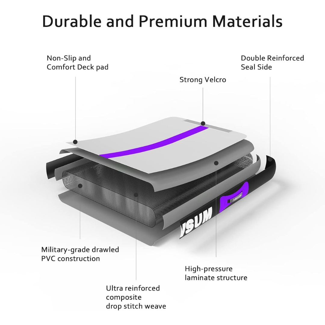 Crafted from high-quality PVC tarpaulin with hand-stitched seams and double-layer waterproof outer material, this mat offers excellent durability and flexibility. The innovative V-drop stitch technology on the inside enhances its elasticity, effectively reducing impact during exercise while providing solid support for your body.
