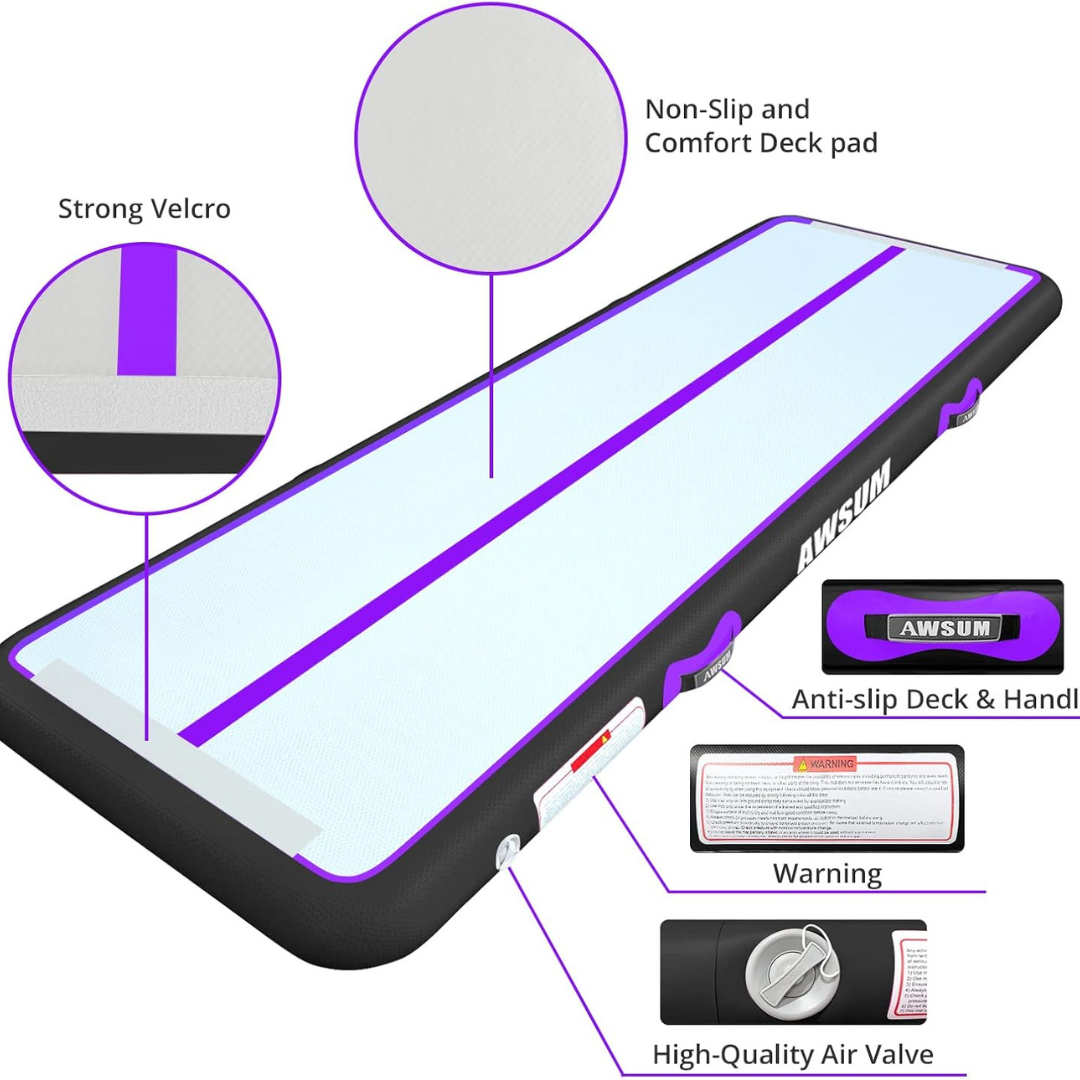 Perfect for home gymnastics practice, indoor and outdoor workouts, and even family fun, this mat is ideal for practicing flips, cartwheels, tumbling, yoga, and more. Its compact design and easy portability make it a hit for camping, beach days, and even transportation to indoor training facilities.