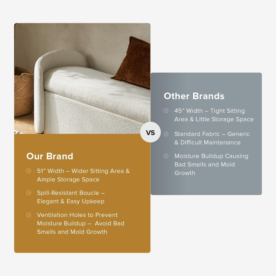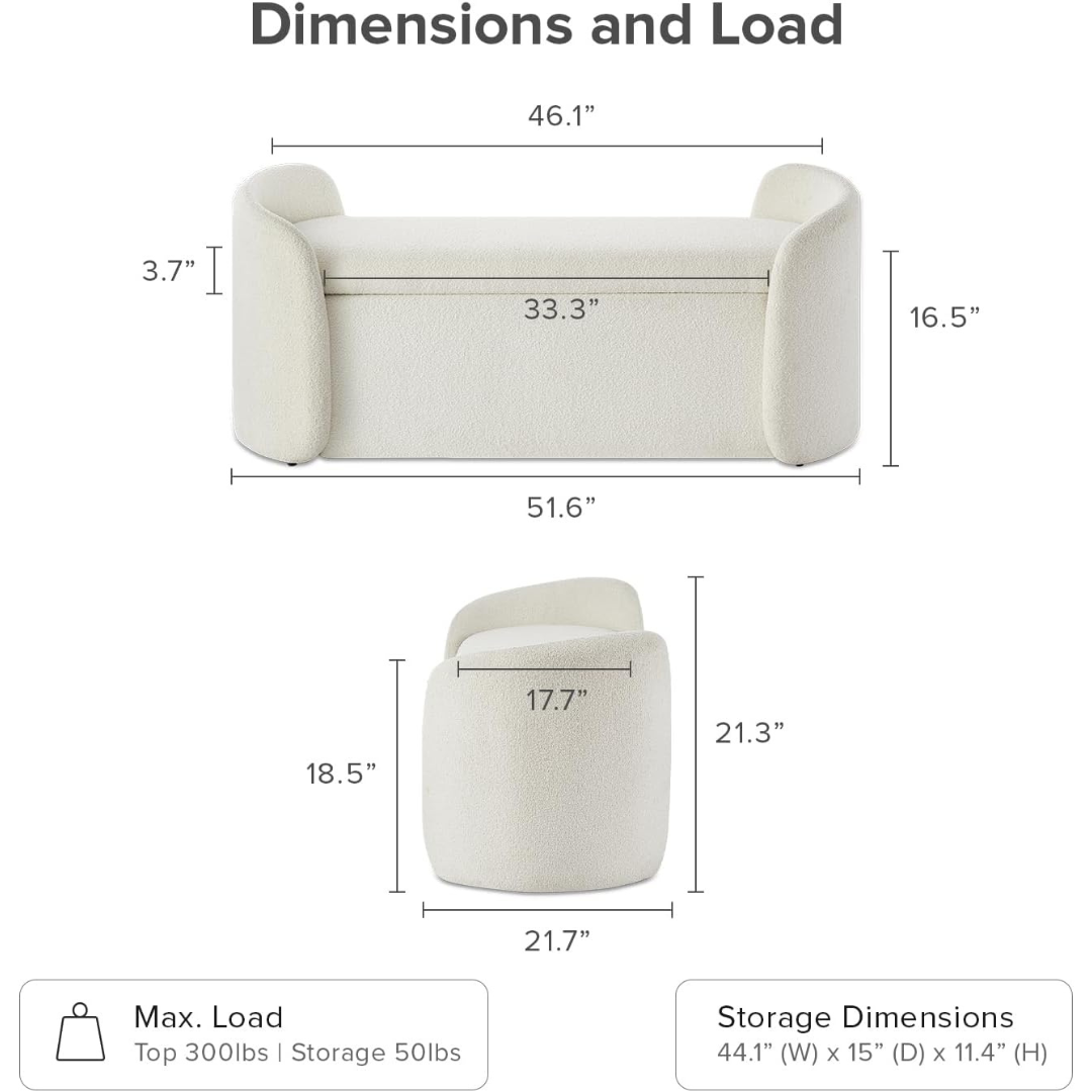 Integrated Storage: Includes a hidden compartment with a 50 lb capacity, perfect for blankets, pillows, or everyday essentials.