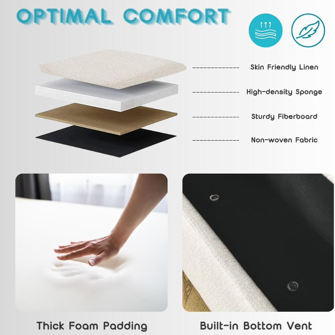 Comfortable & Sturdy Design – The cushioned seat is filled with a thick, high-resilient sponge, ensuring lasting comfort without deformation. Upholstered in soft linen fabric, it provides a soothing touch for relaxation. Built with a high-quality wooden frame and sturdy footstools, it supports up to 300 lbs, offering exceptional stability. It has a sturdy and durable construction, making it a reliable furniture piece.
