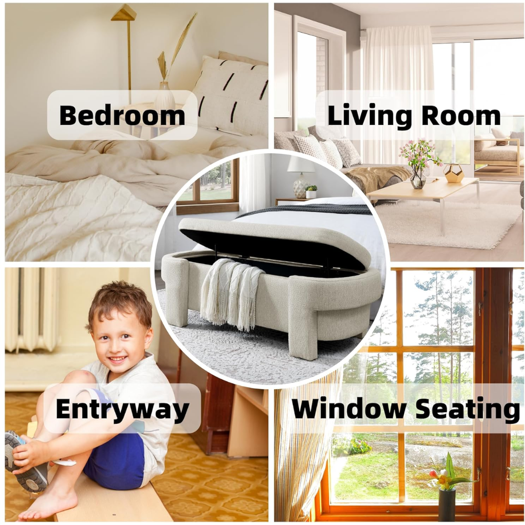 Ample Storage Space – Measuring 51.5"L x 20.5"W x 17"H, with an internal storage capacity of 47.25"L x 16.75"W x 13"H, this bench offers plenty of room to store sheets, clothing, pillows, and more. Its versatility is a convenient storage ottoman that helps keep spaces organized and clutter-free.