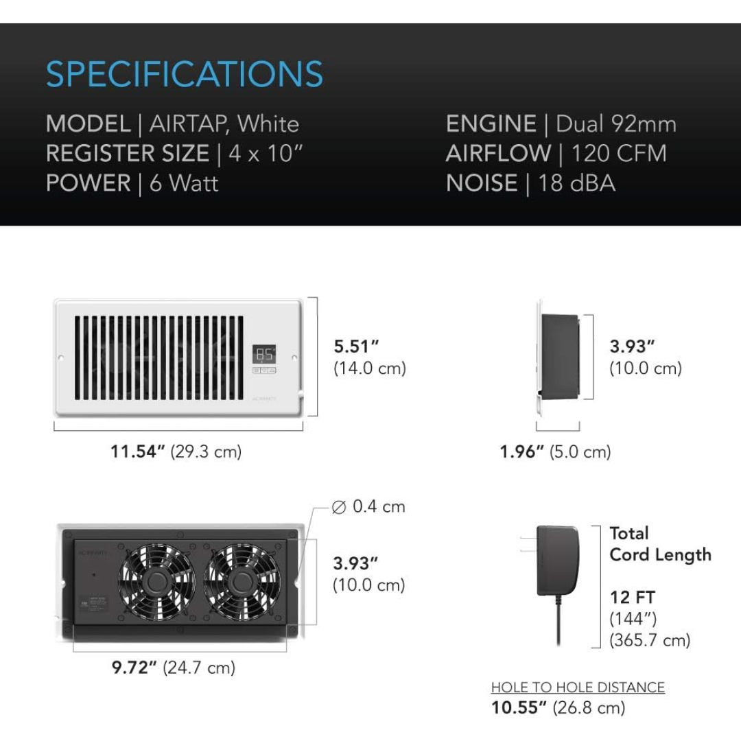 Register Booster Fan for 4” x 10” Register Holes, Improves Heating & Cooling Vents