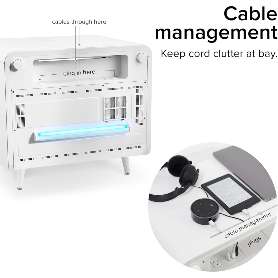 Smart Side/Nightstand Table - with Cooling Drawer, Wireless Charging, Bluetooth Speakers, USB-C and 120V outlets, LED Light